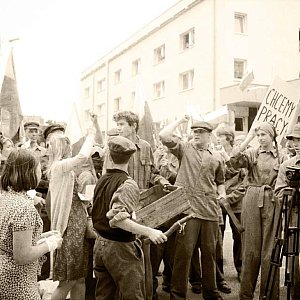 Uczniowie Gimnazjum nr 1 i Gimnazjum nr 2 w Luboniu wraz z nauczycielami brali udział w inscenizacji robotniczego buntu w Poznaniu z 1956 roku. Przebrani za robotników, milicjantów, kolejarzy, przechodniów maszerowali w proteście przeciw władzy. Skandowali hasła, zdobywali czołg, walczyli z milicją, udawali rannych i zabitych. Inscenizacja zrobiła na widzach ogromne wrażenie. Spowodowały to strzały, okrzyki, ruchy czołgu, zwłoki chłopczyka na ulicy, w miejscu, gdzie przed chwilą milicjanci strzelali do tłumu. Historię można poznawać na wiele sposobów - dziś uczniowie uczestniczyli w jednym z nich. Składamy podziękowanie grupie rekonstrukcyjnej Semper Fidelis za zaproszenie do wspólnego działania!