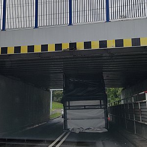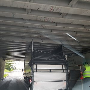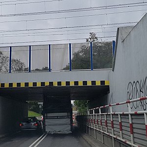 Kilka minut przed godziną 12.00 pod wiaduktem znajdującym się na ulicy Powstańców Wielkopolskich w Luboniu "zaklinował się" samochód. Kierujący pojazdem uszkodził dach samochodu. Jak widać znaki drogowe informujące o wysokości pojazdów jakie mogą wjechać pod wiadukt oraz ograniczniki na niewiele w tym przypadku się zdały. Samochód obecnie jest wyciągany z "pułapki". Na miejscu zdarzenia tworzą się korki.