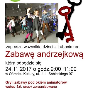 24.11.2017, godz. 9.00 oraz godz. 11.00 - zabawa andrzejkowa dla dzieci, grupy zorganizowane po wcześniejszym zgłoszeniu, wstęp 5zł/os.