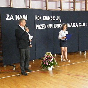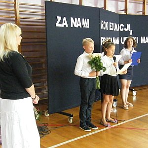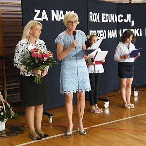 Pani dyrektor dziękując za życzenia wspomniała o satysfakcji, którą przynosiła jej praca, efektywnej współpracy z nauczycielami oraz radości płynącej z kontaktów z uczniami, którzy teraz przyprowadzili do naszej szkoły własne dzieci.
