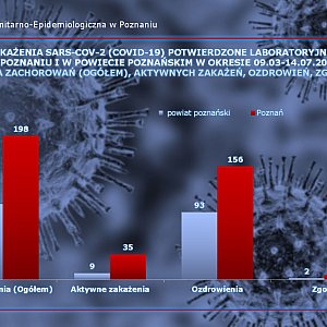 Poniżej zamieszczamy dane statystyczne z Powiatowej Stacji Sanitarno-Epidemiologicznej w Poznaniu - stan na 14.07.2020 roku.