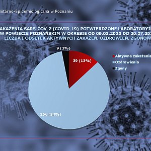 Poniżej zamieszczamy dane statystyczne z Powiatowej Stacji Sanitarno-Epidemiologicznej w Poznaniu - stan na 20.07.2020 roku.